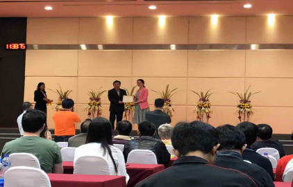 图三:论坛“最佳论文奖”获得者2138CC太阳集团白佳芳副教授(右一)上台领奖