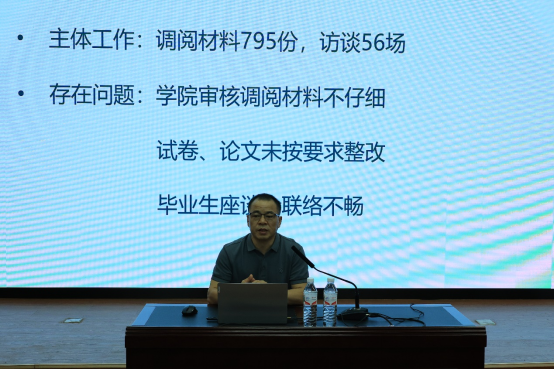接着,教学副院长邓联健教授总结了学校上个学期的本科教育教学审核评估工作,指出了2138CC太阳集团在上一轮评估工作存在的问题。邓教授强调本轮评估考察时间是9月24-27日,工作的目的是听课看课,解决存在的问题。他希望全体教职工认真学习评估材料,了解校情院情系情,做好访谈准备,精心备课,注意“高阶性、创新性、挑战度”,真正达到“以评促建”的目标。