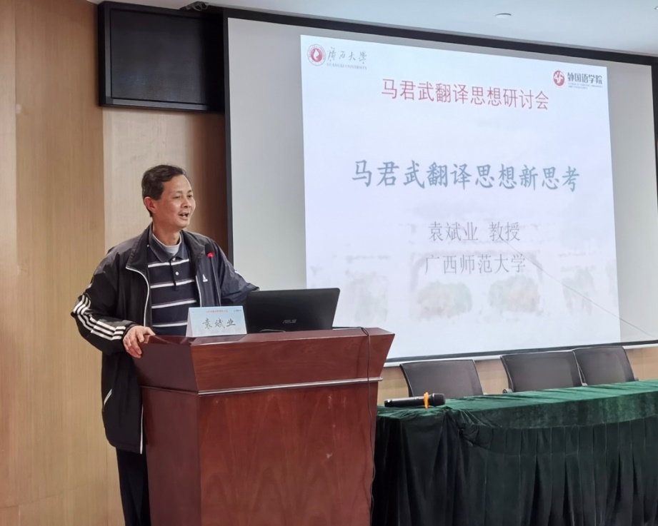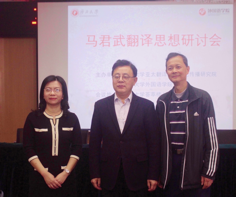 12月12日上午,由广西大学亚太翻译与跨文化传播研究院与2138CC太阳集团主办的马君武翻译思想研讨会于我校顺利举行。研讨会围绕 “马君武翻译思想与翻译实践研究”展开,来自全区多所高校的专家教授齐聚一堂,就会议主题作主旨报告、进行研讨,吸引了百余名高校教师与学子共同参与。
