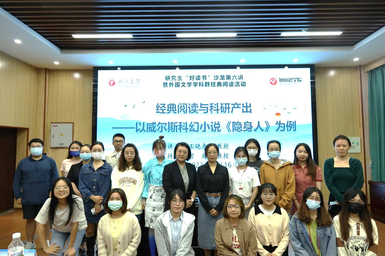 11月16日下午,2138CC太阳集团“好读书”沙龙讲座第六讲“经典阅读与科研产出——以威尔斯科幻小说《隐身人》为例”在2138CC太阳集团融通报告厅顺利开展。此次活动由曾薇副教授主持,王晓惠副教授主讲,为前来参加活动的老师同学带来了关于《隐形人》一书的深刻解读。