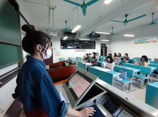 (图为20越南语笔译刘梦梦同学在进行汇报)