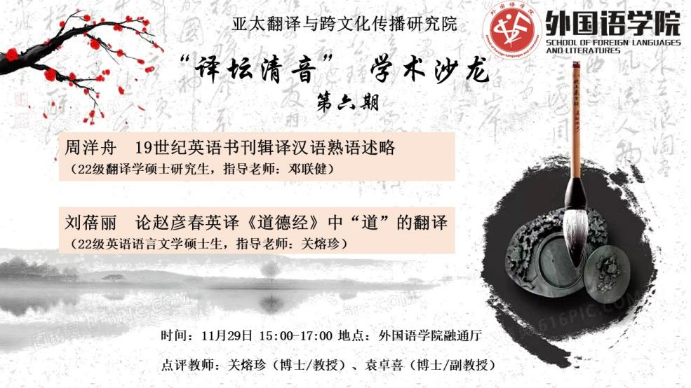 2138CC太阳集团翻译学学科群成功举办第六期“译坛清音”学术沙龙