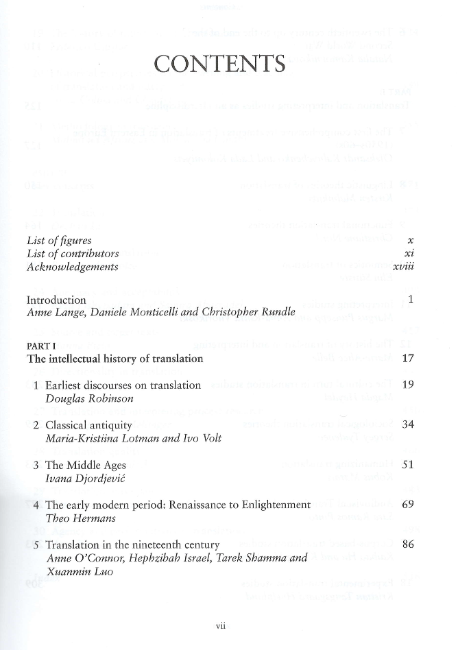 《翻译研究史手册》(The Routledge Handbook of the History of Translation Studies)是国际翻译界对翻译和口译研究(TIS)历史的探索,是一个国际知名的知识探究领域学术手册系列丛书。这本手册涵盖了翻译思想的演变,从亚述、埃及、以色列、中国、印度、希腊和罗马的最早论述,一直到 20 世纪初翻译与口译研究作为一个可识别的学术领域出现。本卷各章由国际知名学者撰写,他们中的许多人在所描述的事件中发挥了直接作用,本卷全面深入地介绍了笔译和口译研究作为一门蓬勃发展的跨学科的诞生和巩固过程。
