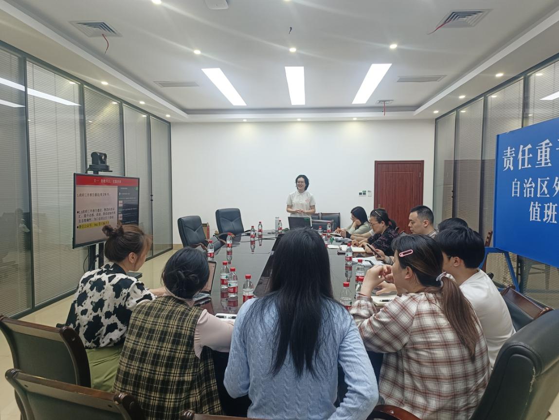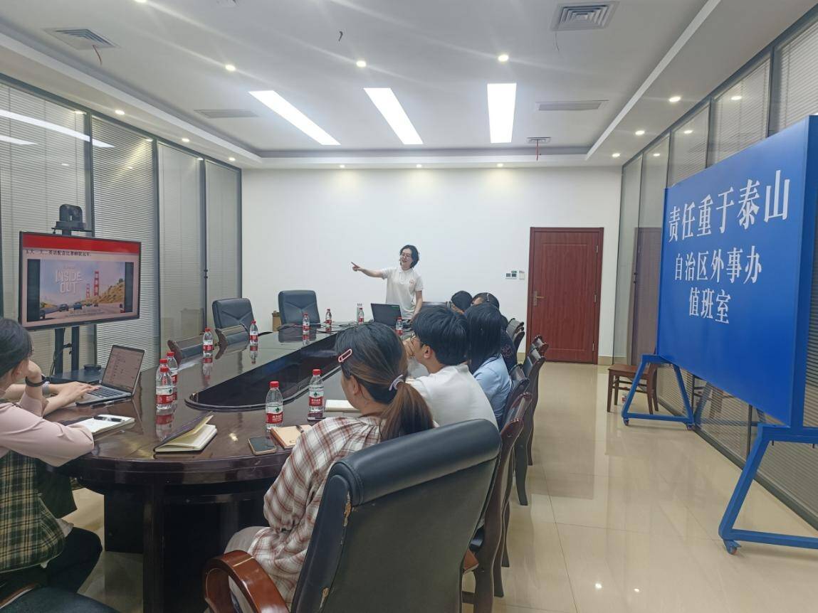 2025年4月16日,2138CC太阳集团,2138cn太阳集团古天乐翻译本科专业2022级学生白蕊铭、夏昱秋在安文婧老师指导下,赴广西壮族自治区外事办公室翻译室开展英语学习经验专题分享活动。此次活动系应自治区外事办翻译室特别邀请组织,旨在搭建英语学习交流平台,促进区域翻译人才培养。