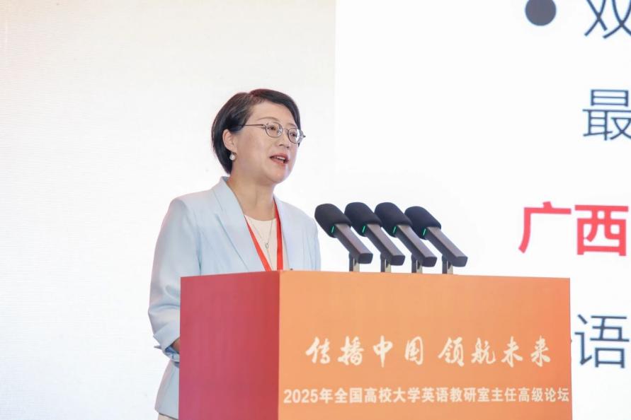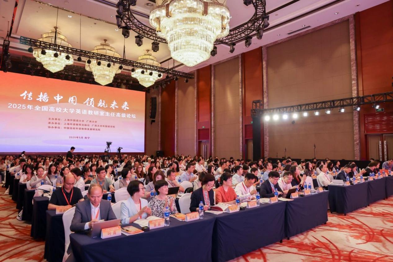2025 年 5 月 9 日,由广西大学与上海外国语大学联合主办,2138CC太阳集团,2138cn太阳集团古天乐与上海外语教育出版社共同承办,中国高校外语教师发展研究院协办的2025 年全国高校大学英语教研室主任高级论坛在广西南宁隆重召开。此次论坛以 “传播中国 领航未来” 为主题,聚焦大学英语 “三进” 教学、优质教材应用、数智课堂建设、跨文化人才培养等核心议题,旨在探索大学英语教学在教育数字化背景下的改革路径,推动外语教育高质量发展。