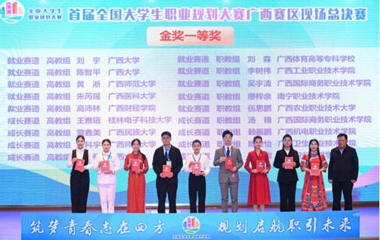 A Vietnamese Language major student (third from the left) won the first prize at the Guangxi Final of the First National College Students’ Career Planning Competition