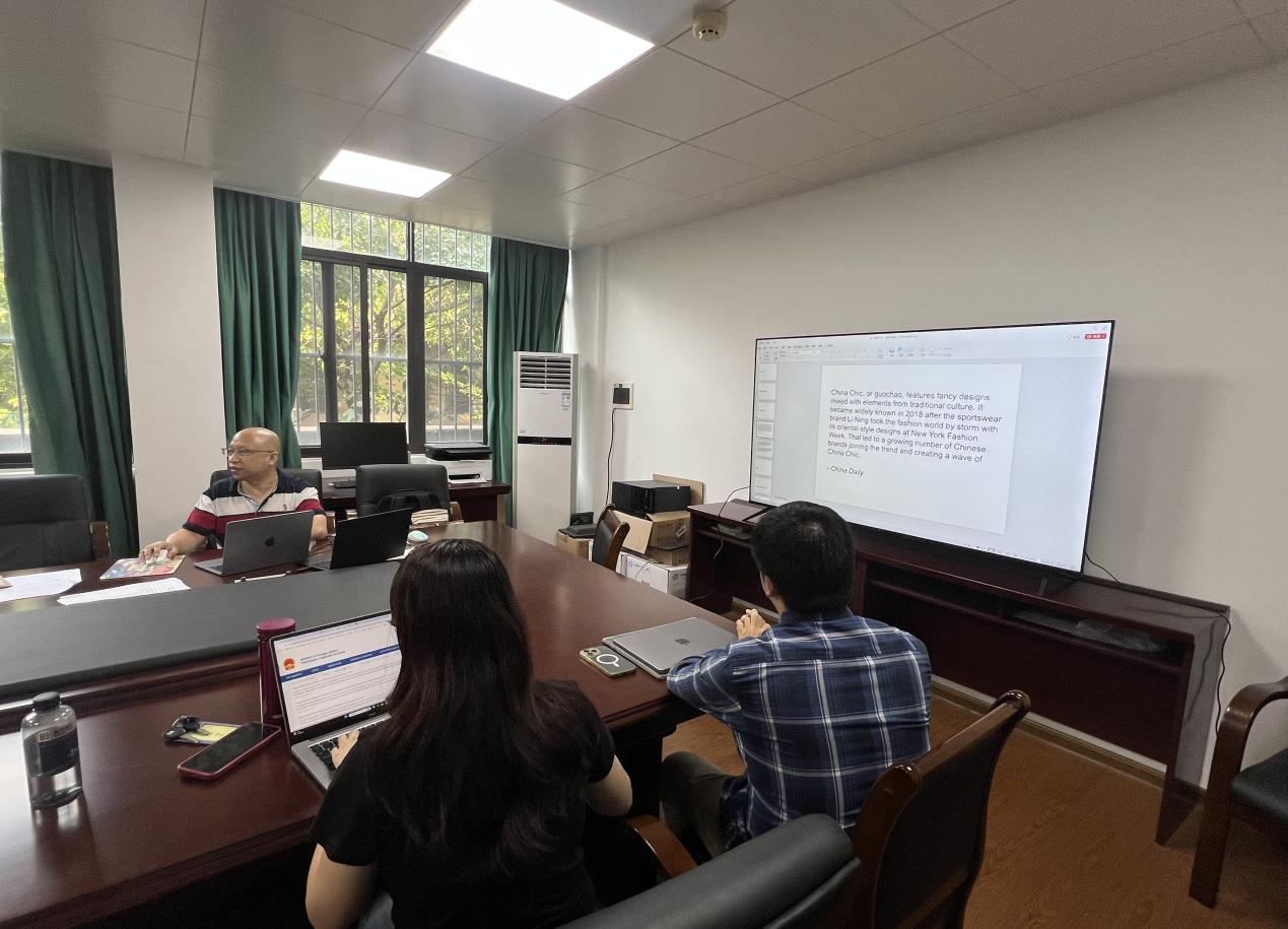 为深入推进英文系和翻译系课程思政建设工作,进一步总结、凝练、推广课程思政建设经验,促进两系树立、形成课程思政建设共识,深化“事-理-德-人”为主线的课程思政教学改革,提升教师课程思政水平和能力,促进人才培养质量提高,并进一步推动两系教研活动有效开展,加强教学研究,促进教师间的教学经验交流与分享,2024年9月12日下午,英文系与翻译系在系办举办了本学期首次课程思政专题教学研讨活动。本次活动由翻译系副主任安文婧老师主持,学院党委副书记、纪委书记程锐老师、英文系系主任刘英老师、副主任秦川老师及两系其他教师参加了此次研讨。
