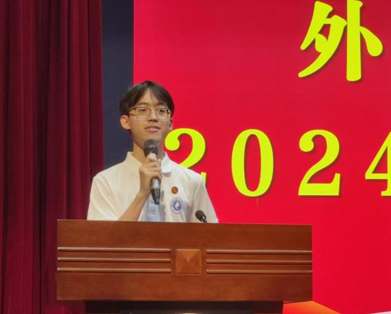 越南语241班梁庭铭作为新生代表发言。作为大一新生,他满怀激动表示广西大学是学子们憧憬已久的学术摇篮,“复兴中华,发达广西”是 “西大人”的责任与使命。他呼吁2024级新生,作为新时代的青年外语人,要明确目标,科学规划;要勇于创新,积极实践;要团结协作,心怀家国;还要“撸起袖子加油干”,用奋斗书写属于我们自己的青春华章,用成绩助推学院和学校发展的中心大局。
