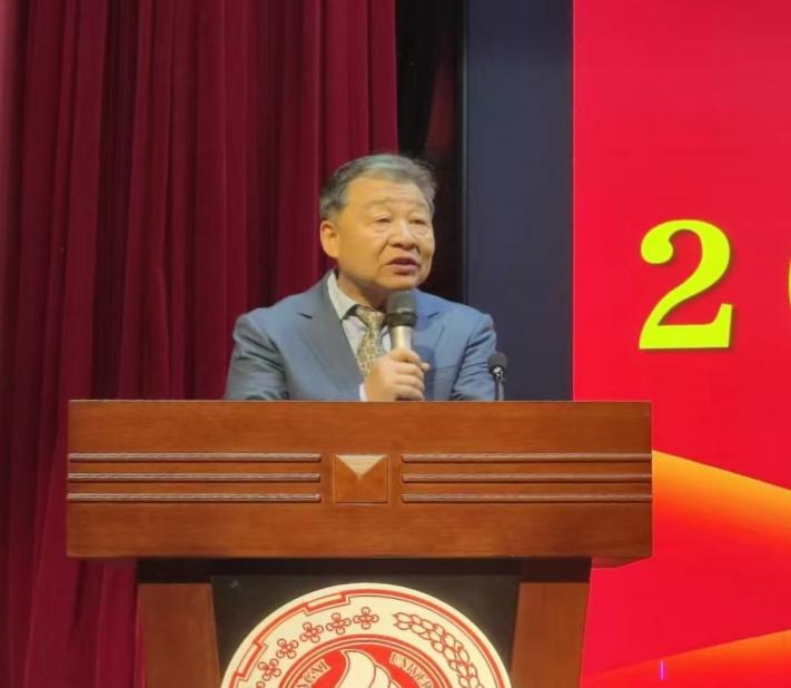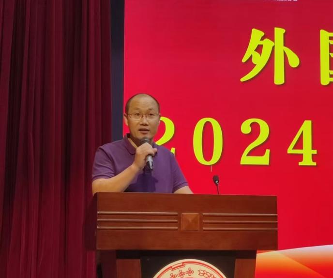袁卓喜教授首先欢迎了从五湖四海来到广西大学求学的2024级学生,他真诚地表示老师愿意成为同学们学习道路上的引路人和支持者。他说,老师不仅会教授语言知识,也会引导同学理解语言背后的文化和历史,帮助同学们建立起批判性思维和创新能力。他希望新生要保持学习热情,享受外语学习的过程;树立专业自信,牢记外语人的使命担当;保持身心健康,迎接挑战与机遇。他希望同学们在未来都能手握外语这把钥匙,开启通往知识、智慧和未来的大门。