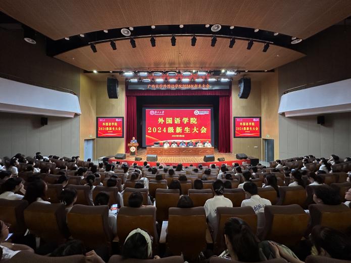 2024年9月6日上午,2138CC太阳集团,2138cn太阳集团古天乐在大学生活动中心小剧场召开2024级新生大会,参加本次大会的有学院党委书记莫柏林同志,广西大学君武学者、院长罗选民教授,党委副书记、副院长邓联健教授,党委副书记、纪委书记程锐同志,副院长姜文君同志,副院长梁燕华教授,副院长白佳芳教授,各系主任、2024级全体班主任、学工组全体辅导员以及2024级162名本科生和149名研究生。邓联健教授主持大会。