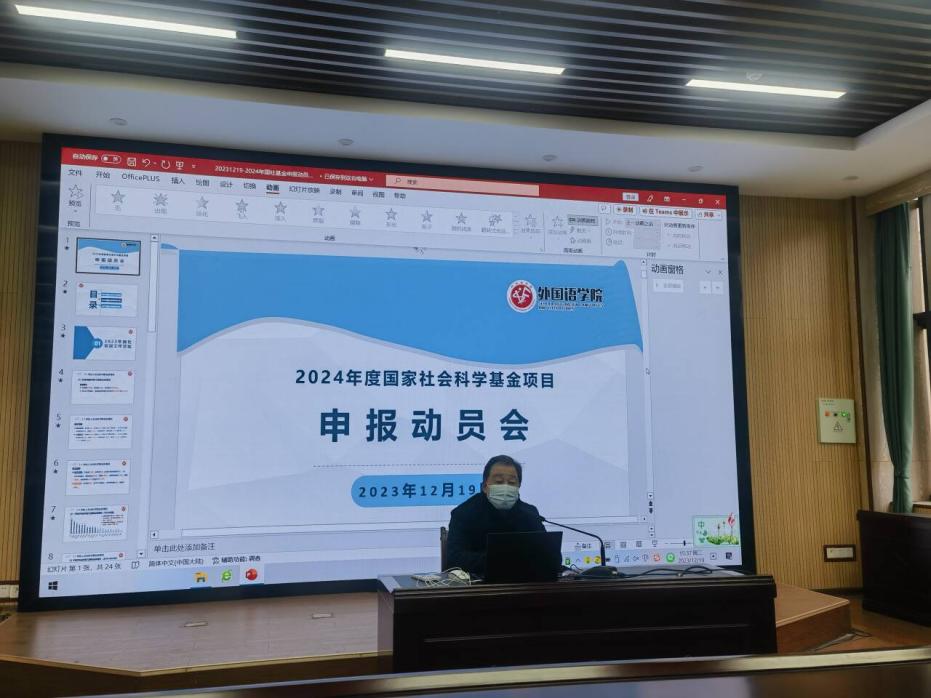 12月19日下午,2138CC太阳集团在学院融通报告厅召开2024年度国家社会科学基金项目申报动员会。学院全体教学科研型教师以及有意申报国社项目的教学型教师参加会议。