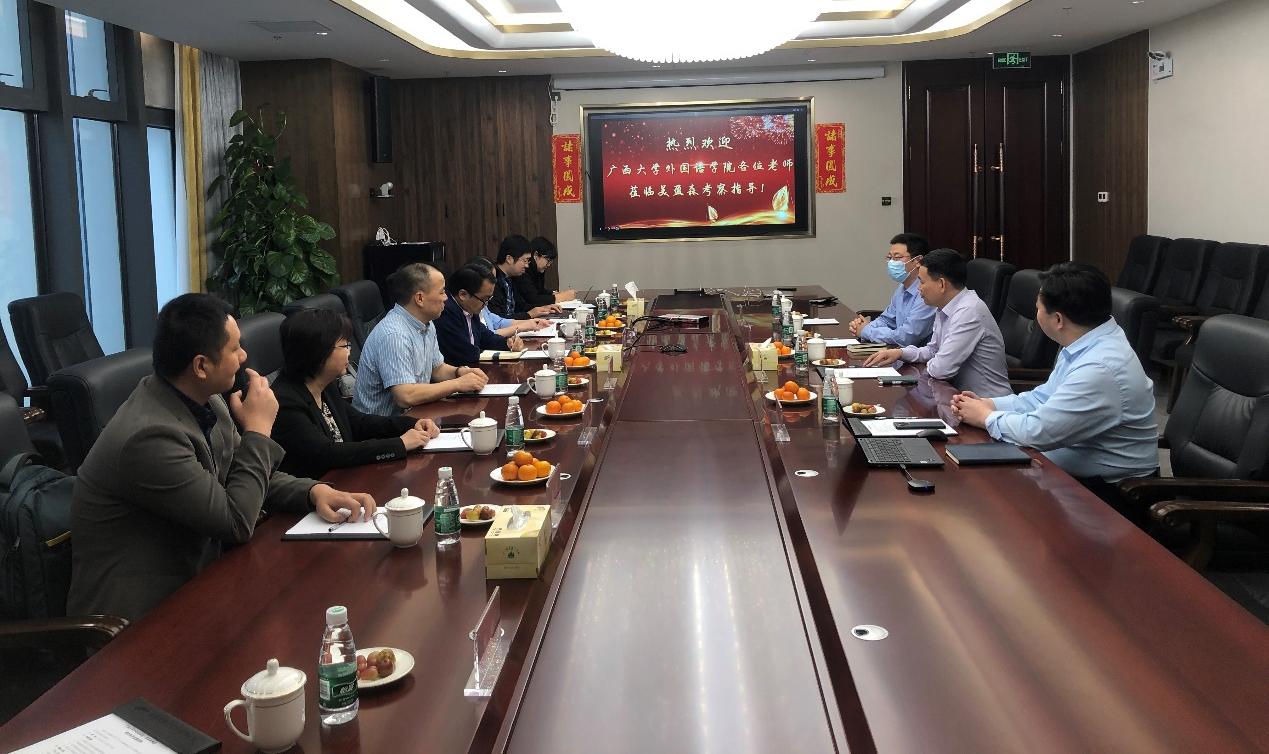 11月29日下午,调研团在深圳汇合,并共同前往位于深圳光明区的美盈森集团总部开展调研。在调研活动中,程副书记和邓副院长详细了解了企业在国家“一带一路”倡议和全球化背景下的经营现状和发展方向,与企业就外语人才培养、校企联合共建、大学生职业生涯规划等方面问题进行了深入探讨。