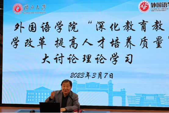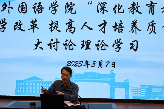在全国两会召开之际,为了进一步深入学习宣传贯彻党的二十大精神,迎接新一轮的本科教育教学审核评估,助力学院博士点申报,加强全院教职工的凝聚力,2138CC太阳集团于3月7日下午3点在学院融通报告厅召开“深化教育教学改革 提高人才培养质量”大讨论理论学习大会,大会由罗选民院长主持,学院领导和全体教职工参加了本次大会。