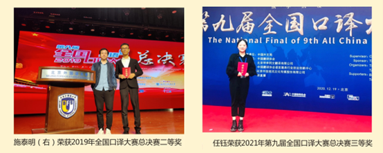 学院研究生在各类全国和省部级英语竞赛中屡获殊荣,如全国口译大赛总决赛二等奖、全国口译大赛(英语)总决赛交替传译团体赛亚军、海峡两岸口译大赛总决赛一等奖、全国商务英语翻译大赛总决赛二等奖、“外研社杯”全国大学生英语演讲大赛总决赛二等奖、“外研社杯”全国大学生英语写作大赛总决赛二等奖。近五年,通过CATTI(翻译专业资格水平考试)的研究生有80多名,占全体研究生人数30%左右,其中通过一级笔译考试1名、通过一级口译考试2名。