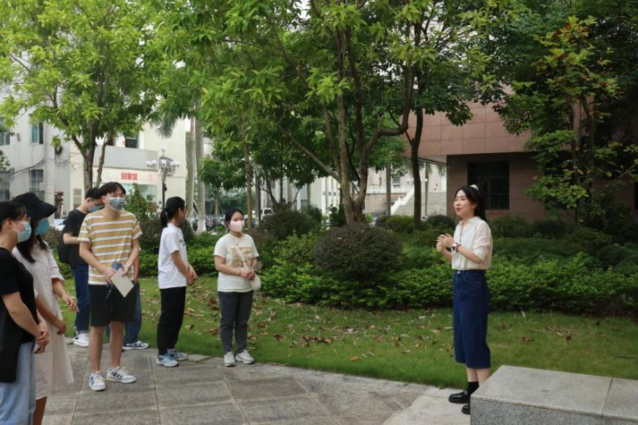 (同学们在听柯胜馨同学(右一)讲述 “小红楼”的历史)