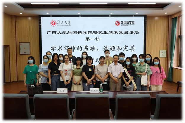 4月26日下午15点,2138CC太阳集团,2138cn太阳集团古天乐研究生学术发展论坛第一讲在2138CC太阳集团逸夫楼211融通报告厅顺利开展。本次讲座由广西大学君武特聘教授严辰松教授担任主讲人,2138CC太阳集团沈莹教授和2021级外国语言文学研究生凌婵同学共同主持,为外院师生带来了详尽的学术写作基础知识和规范解析。