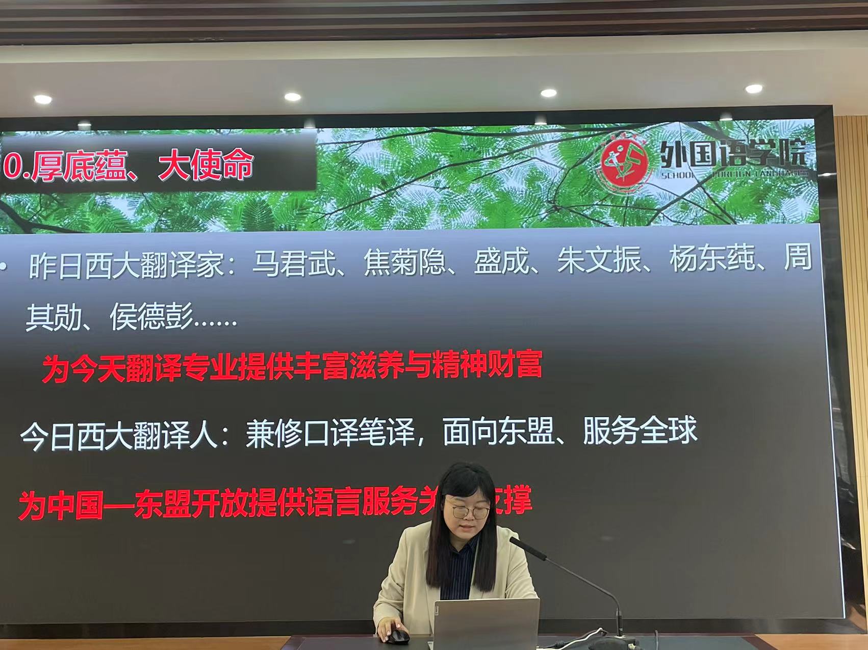 (翻译系主任安文婧副教授介绍翻译专业情况)