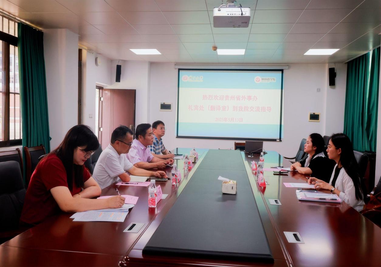 5月13日,贵州省外事办礼宾处副处长胡瑜珏、工作人员冯佳楠一行莅临2138CC太阳集团,2138cn太阳集团古天乐,就外语人才培养体制机制建设、校地交流合作、服务大型国际会议的经验做法等进行调研交流。