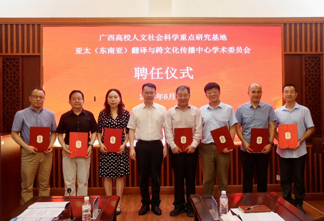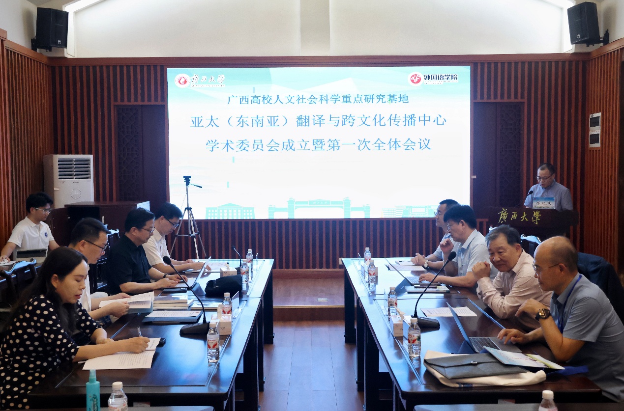 6月8日,广西高校人文社会科学重点研究基地亚太(东南亚)翻译与跨文化传播中心学术委员会成立大会暨第一次全体会议在广西大学知行书院召开。广西大学副校长赵双良,基地学术委员会全体成员广西大学社科处处长李海波外国语学院领导班子、基地学术骨干出席会议