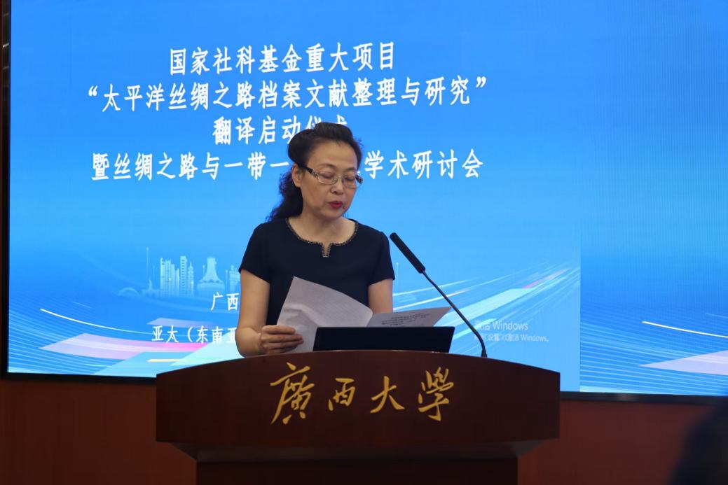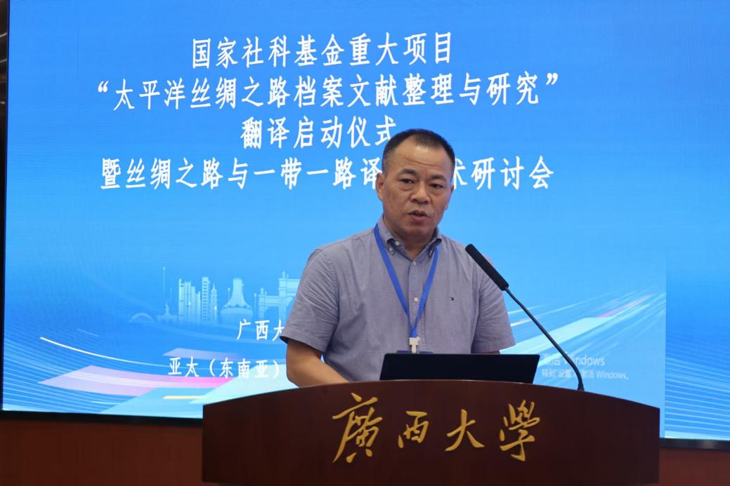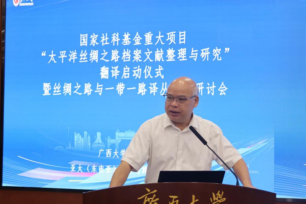 广西大学党委常委、副校长梁恩维强调,学科建设需要服务国家发展战略,广西大学位处丝绸之路重要节点,需结合面向东盟的优势发展学科。国家社科基金重大项目“太平洋丝绸之路档案文献整理与研究”项目中的史料整理挖掘与东盟语料库搭建,对广西大学学科建设起基础性支撑作用,希望与会专家、学者在此次研讨会中共同讨论、相互交流,将文献资料作为“根”,挖掘广西面向东盟的区域特色,共同服务国家发展战略。