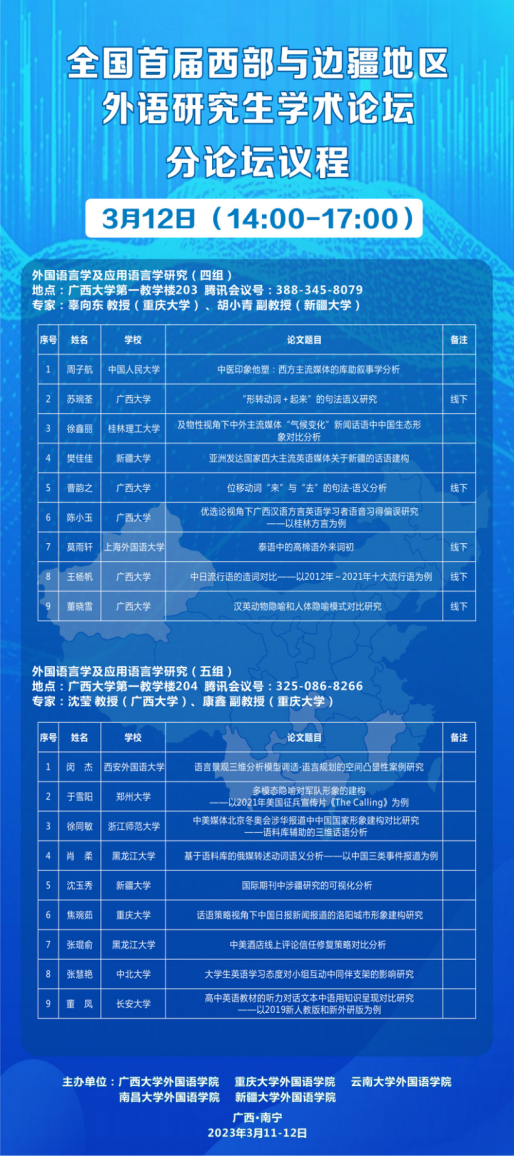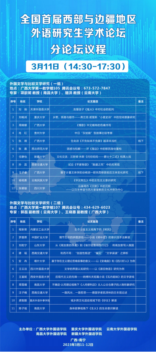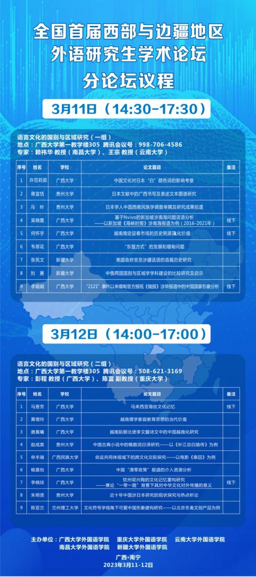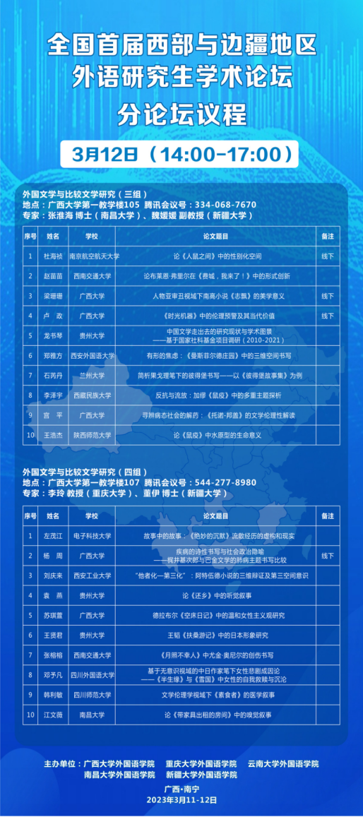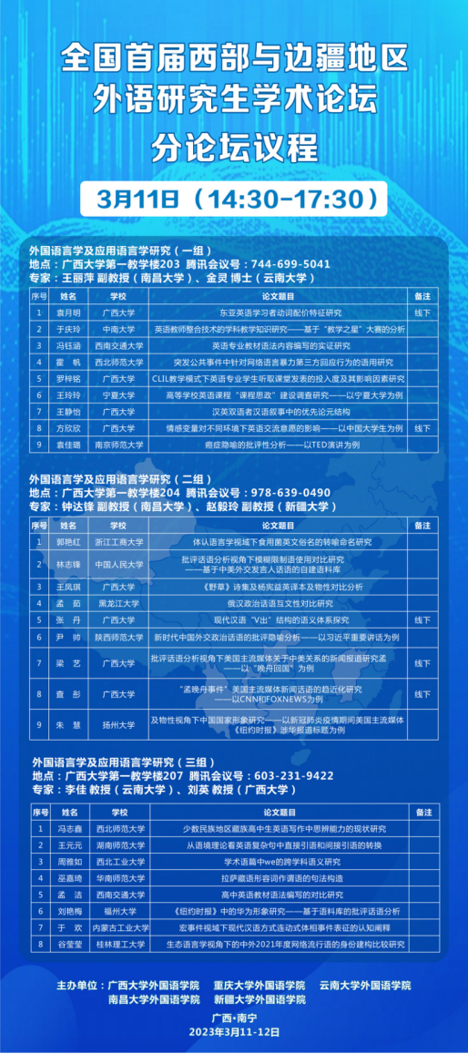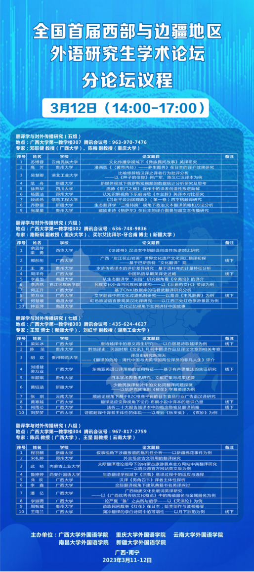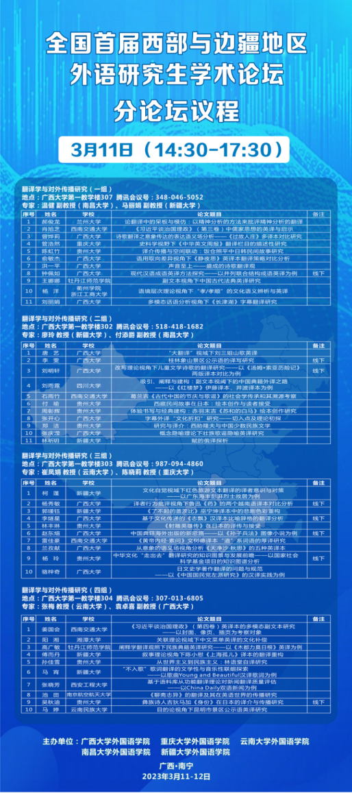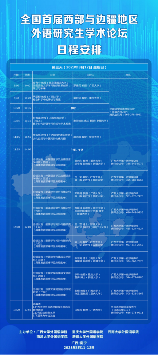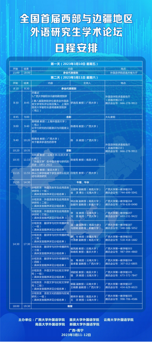 全国首届西部与边疆地区外语研究生学术论坛日程安排