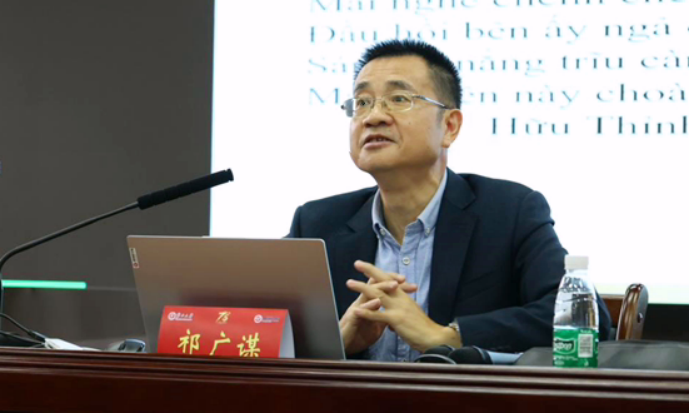 广西大学特聘教授,东南亚语系主任祁广谋围绕《金云翘传》在越南的经典化与越南的传统美学理想进行了发言。祁教授指出,阮攸的《金云翘传》问世后,在越南代代相传,形成了金云翘文化,其对后世小说创作也产生了相当大的影响。《红楼梦》显示出的心灵结合的爱情观、大观园中试诗才、连吟唱和等情节均发脉于《金云翘传》等才子佳人小说。关于中越传统文化交流,祁教授认为我们要了解中国传统文化的价值体系;提高汉语表达能力,适当学习古诗文的表现方法;加强对越南古代诗文的研究;提高文学理论修养,客观评价作品的价值。