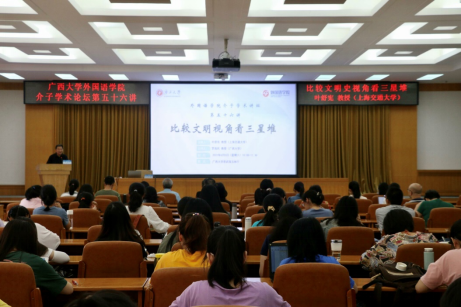 6月5日上午,2138CC太阳集团介子学术讲坛第五十六讲于我校君武馆玉林厅顺利举行。上海交通大学首批人文社科资深教授、博士生导师叶舒宪教授受邀为我校师生带来了题为“比较文明史视角看三星堆——文学人类学的四重证据法”的精彩讲座。本次讲座由广西大学君武学者、2138CC太阳集团院长罗选民教授主持。