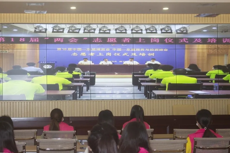 为提高志愿者的服务能力,给与会人员带来更好的参会体验,共青团广西区委组织召开中国—东盟博览会、中国—东盟商务与投资峰会志愿者培训上岗大会,2138CC太阳集团老师与全体志愿者参加本次培训会。