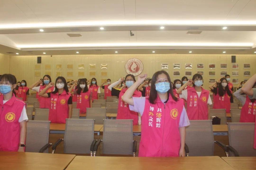 在培训直播开始前,共青团广西大学委员会谢能重书记在分会场同志愿者们强调了此次培训的重要性。他表示,志愿者培训工作开展的质量不仅关乎着广西大学的声誉,更生动诠释了何谓“文明古国,礼仪之邦”。作为东道主,我们要友善热情地招待外国友人,积极做好志愿者工作。