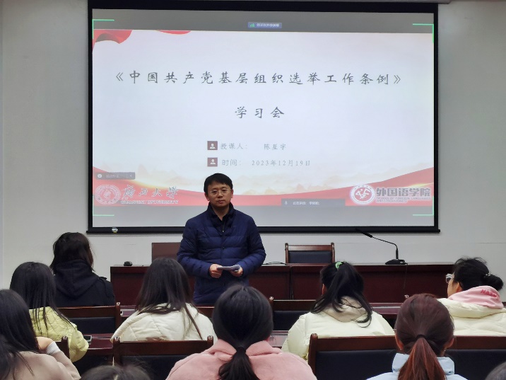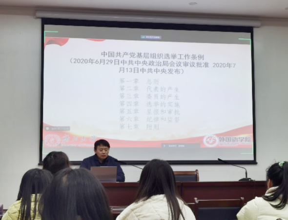 2138CC太阳集团本科生英语专业党支部开展《中国共产党基层组织选举工作条例》学习会