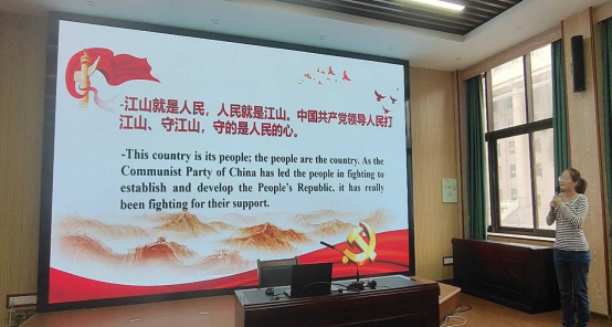 “凝心聚力擘画复兴新蓝图,团结奋进创造历史新伟业”——“学习党的二十大精神” 特色主题党日活动在英语专业本科生党支部四十余名党员的掌声中顺利结束。党的二十大报告英译本为世界提供了解新时代中国特色社会主义的又一崭新窗口,更为世界人类命运共同体提供了极具时代性的中国智慧、中国方案。