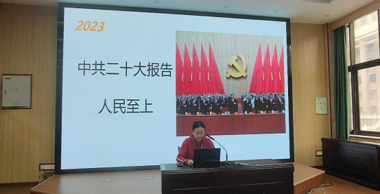支部党员张姝佳从“人民至上”一词发散开来,就党的二十大报告英文对照本中第九部分“Improving the People’s Wellbeing and Raising Quality of Life”分享自己的真实见闻。“为民造福是立党为公、执政为民的本质要求”译为“Working for the people’s wellbeing is an essential part of the Party’s commitment to serving the public good and exercising governance for the people”;“解决好人民群众急难愁盼问题”译为“work hard to resolve the pressing difficulties and problems that concern them most”;“消除影响平等就业的不合理限制和就业歧视”译为“eliminate unjustified restrictions and discrimination that undermine equal employment”等等。姝佳从自己的视角谈及当代大学生“就业难”的问题:“就业问题是民生问题,我们看到,目前就业市场上对女性应聘者仍然存在一定程度的就业歧视。”她动情地说,“所幸中国共产党着力改善民生福祉,提出诸如就业优先战略等系列措施,为解决此问题付出实际努力。很感激自己生在中国!”