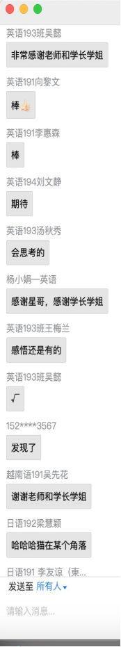 在两位优秀的校友分享完后,同学们积极的提问,向两位前辈请教了很多学习、生活方面的知识,整个过程非常的积极火热,大家均感觉今天的课程受益匪浅,如果有机会还想继续这样的活动。