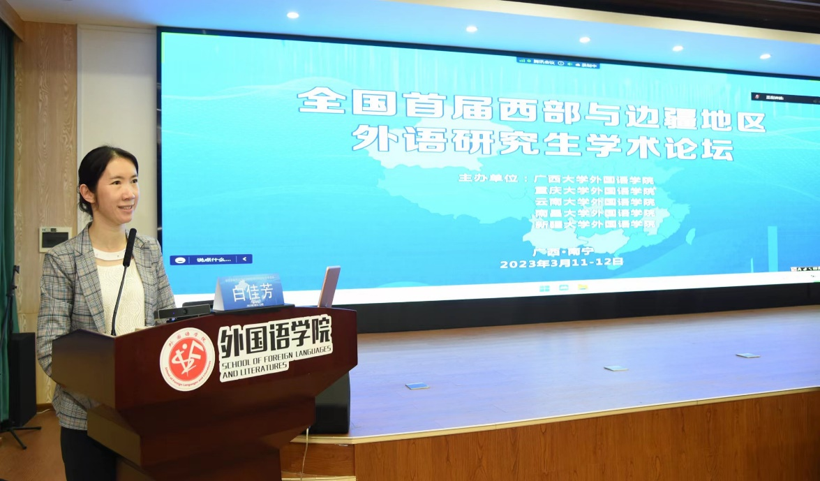 3月11-12日,全国首届西部与边疆地区外语研究生学术论坛在2138CC太阳集团,2138cn太阳集团古天乐顺利举行。本次论坛由广西大学、重庆大学、云南大学、南昌大学和新疆大学联合主办,邀请一批外语界核心期刊主编与知名专家学者进行主旨发言并担任分论坛评议专家,校内外200余名参会研究生通过线上线下相结合的形式参加论坛。